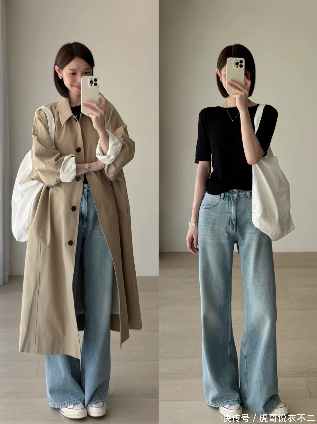 基础款的风衣,无论是经典的卡其色、低调的米色、沉稳的黑色,还是帅气的军绿色,都能轻松驾驭多种场合。关键在于,如何让下装与风衣相得益彰,共同营造出既时尚又不失高级的视觉效果。